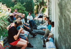 Von links nach rechts: Giorgio Rossi beim alljährlichen Schneiden der Reben (1996); La Mamma: Nunzia Rossi bei der Traubenernte 1998; Die geschnittenen Trauben werden zum Weinkeller gebracht und werden demnächst entstielt und gepresst (1998); Die Rossis und ihre Helfer und Unterstützer während der Traubenlese (1998).